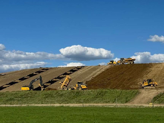 Stormwater pond stripping presented a challenge due to the material being heavily saturated and unusable to reuse as part of cover layers. The crew modified execution efforts by creating a series of berms between the excavation and the pond to continue advancing in a series-like manner.
