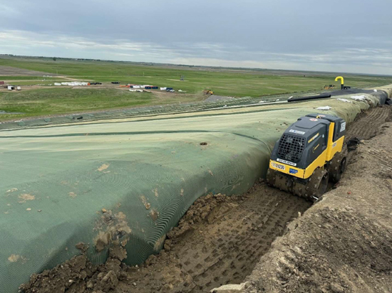 This site, in particular, is prone to high winds, and as a result, created concerns for several days during deployment and the previously installed liner when the wind gusts were in excess of 90 km/hr. KBL worked with the Geosynthetic Sub-Contractor to secure the liner in the anchor trench in efforts of maintaining the progress that was made leading up to the high-wind days.