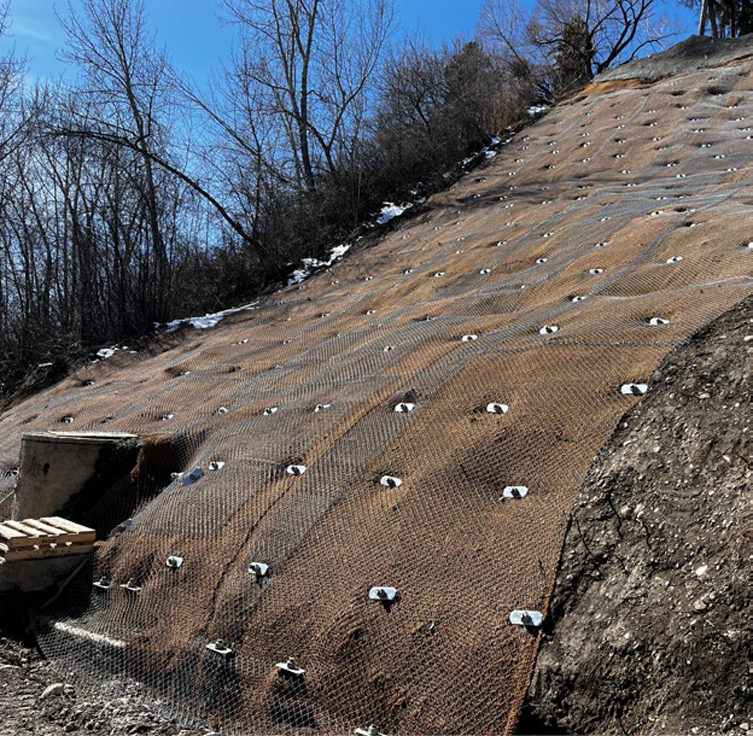 - Stabilization of the “East Lower” slope through soil nails with welded wire mesh and coir erosion matting. 550m2 in total.
